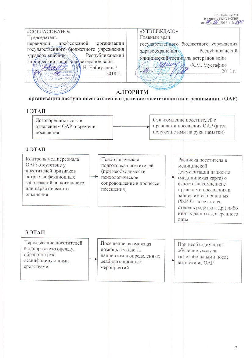 Алгоритм организации доступа посетителей в отделение анестезиологии и реанимации (ОАР)