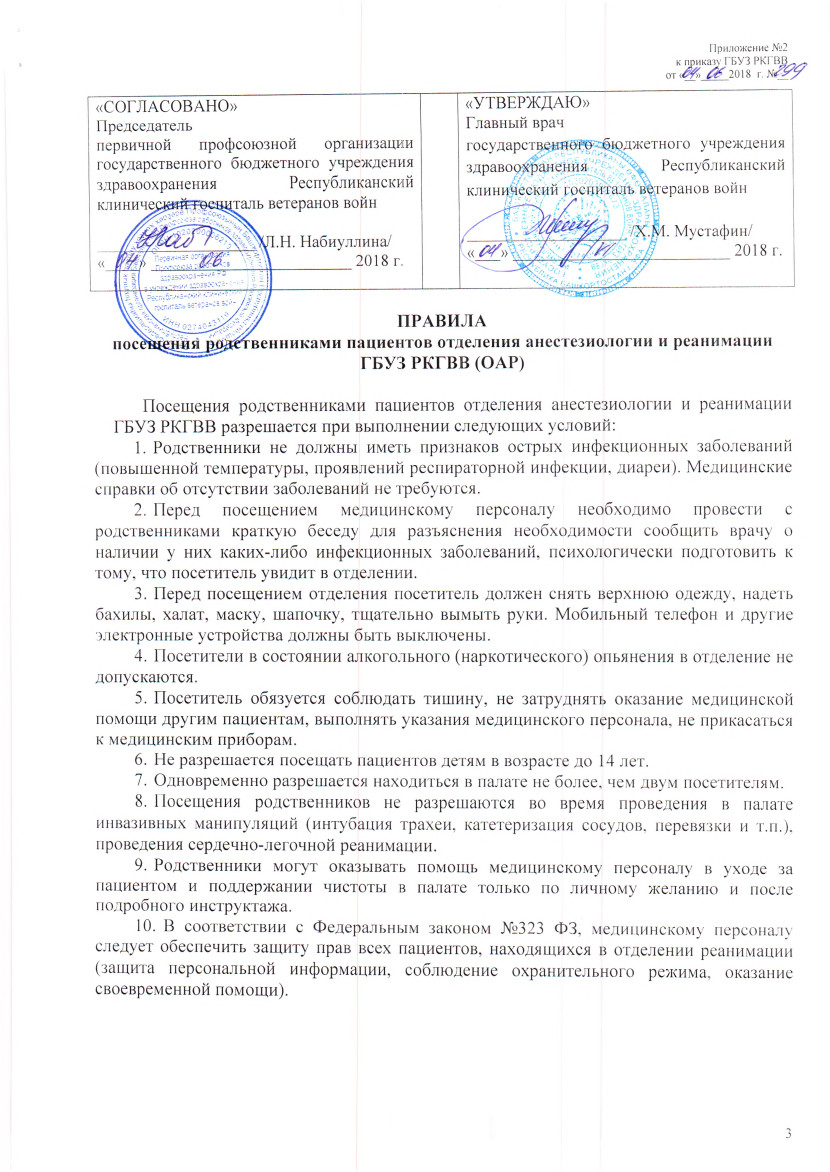 Порядок посещения пациентов отделения анестезиологии и реанимации ГБУЗ РКГВВ(ОАР)