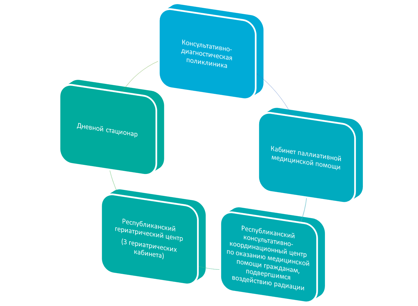 Консультативно-диагностическая поликлиника является структурным подразделением Республиканского клинического госпиталя ветеранов войн; рассчитана на 200 посещений в смену.